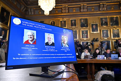 Briton John Clarke, Frenchman Michel Devoret and American John Martinis yesterday won the Nobel Prize in Physics for work on quantum physics in action, the Nobel jury said. The trio was honored “for the discovery of macroscopic quantum mechanical tunneling and energy quantization in an electric circ
