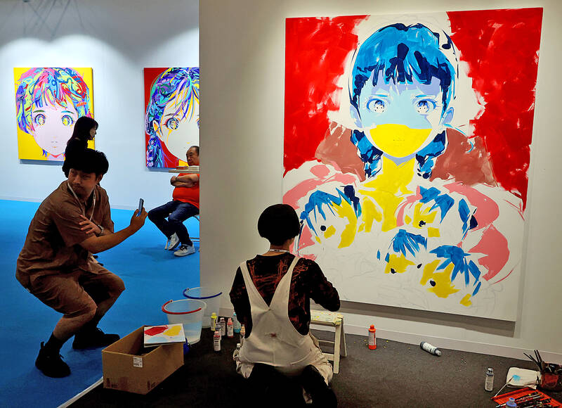 People visit Art Taipei at the Taipei World Trade Center’s Hall 1 yesterday before its opening to the public today. The 32nd edition of the art fair, which runs through Monday, features works from 68 local and 52 overseas galleries under the theme “Intersect: Diversity Equals Togetherness.”