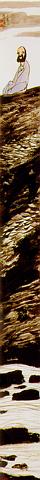 "Chinese art, like Chinese Mahayana Buddhism, is more usually interested in Bodhisattvas, particularly the Bodhisattva Guanyin. Guanyin took a vow of compassion and abandoned her own pursuit of enlightenment and salvation to assist in `ferrying the myriad living beings across the sea of suffering to the other shore of Nirvana.' I chose to paint arhats because they are at an earlier stage of spiritual cultivation, and therefore much nearer to us."