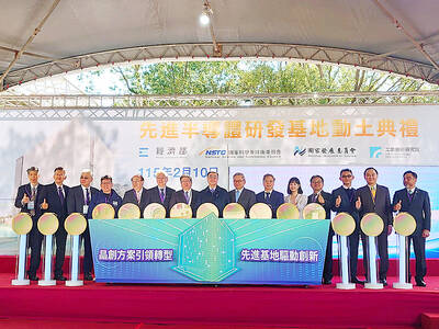 The Ministry of Economic Affairs yesterday broke ground on the Industrial Technology Research Institute’s advanced semiconductor research and development (R&D) base in Hsinchu County’s Jhudong Township (竹東).The NT$3.772 billion (US$119.56 million) base is a joint project with the National Developmen