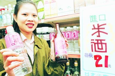 The most significant price change, however, will be seen on the local cooking staple "red label" rice wine (紅標米酒), which is expected to jump in price from the current NT$29 per bottle to more than NT$100.