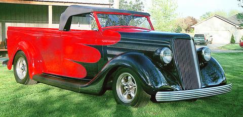 He didn't like the proportions, so he "chopped" the windshield two inches and squared off the cowl behind the seat, flattening the original arc. He also moved the back of the cab forward and shortened the box. He devised a rumble seat for his children that folds flush into the front of the bed when not in use.