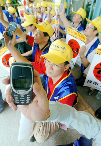 Union members swarmed into branches to interrupt operations and made phone calls en masse three times in an attempts to paralyze the telephone networks of the Executive Yuan, the Ministry of Transportation and Communications, and some of Chunghwa's operation units.