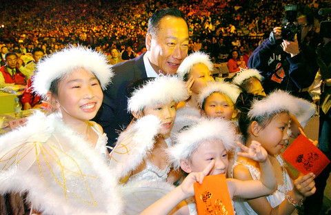 While Hon Hai has always given generously to its workers at its year-end parties, Gou said yesterday that the theme of this year's party was concern for society, and that a portion of the employee awards would be given to charity groups.