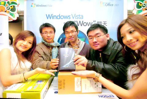 The consumer release of Vista, along with the 2007 Microsoft Office System, was held yesterday in front of Nova, one of Taipei's major IT shops located near the bustling Taipei Railway Station.