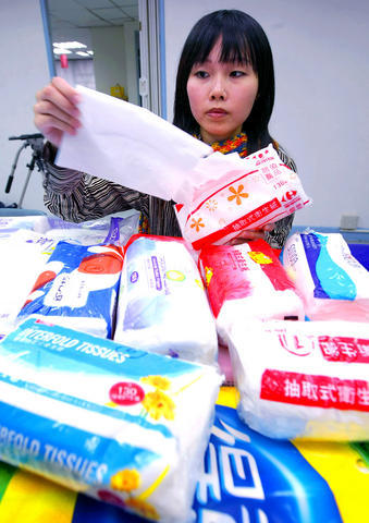 The tests showed that seven out of 12 sampled Carrefour tissue paper packages had less than the number of tissues indicated on the label, foundation chairman Cheng Jen-hung (