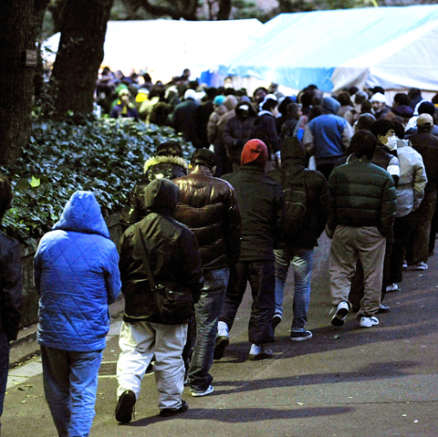 The government offered a ministry hall late on Friday, responding to a request from volunteers, to house more than 250 unemployed and homeless people after the first comers quickly filled the tents, according to the shelter’s Japanese-language Web site.