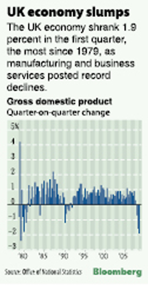 The UK economy shrank more than economists forecast in the first quarter, marking the biggest contraction since the rise of then-British prime minister Margaret Thatcher in 1979 as manufacturing and business services posted record declines.