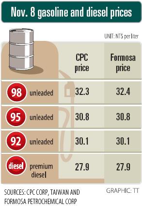 Formosa Petrochemical Corp (台塑石化) also said it would raise prices for gas and diesel by NT$0.3 per liter and NT$0.4, respectively.