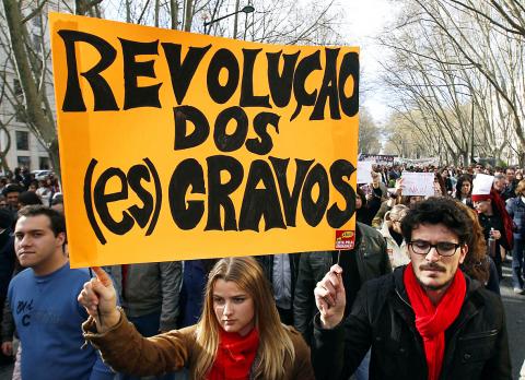 Portugal’s disgruntled Facebook generation, inspired by a pop song, marched in a dozen cities to vent its frustration at grim career prospects amid an acute economic crisis that shows no sign of abating.