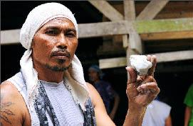 The former laundrywoman turned gold buyer directs the procession to her small milling shack amid grunts from the miners whose backs are stooped under the weight of their hauls from the dangerous honeycomb tunnels of Mount Diwata.