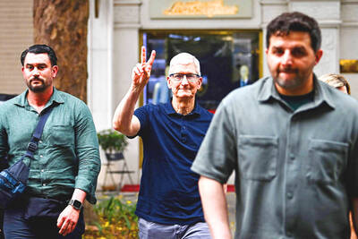 MAJOR DROP: CEO Tim Cook, who is visiting Hanoi, pledged the firm was committed to Vietnam after its smartphone shipments declined 9.6% annually in the first quarter Apple Inc yesterday said it would increase spending on suppliers in Vietnam, a key production hub, as CEO Tim Cook arrived in the country for a two-day visit. The iPhone maker announced the news in a statement on its Web site, but gave no details of how much it would spend or where the money would go. Cook is expected to meet programmers, content creators and students during his visit, online newspaper VnExpress reported. The visit comes as US President Joe Biden’s administration seeks to ramp up Vietnam’s role in the global tech supply chain to reduce the US’ dependence on China. Images on