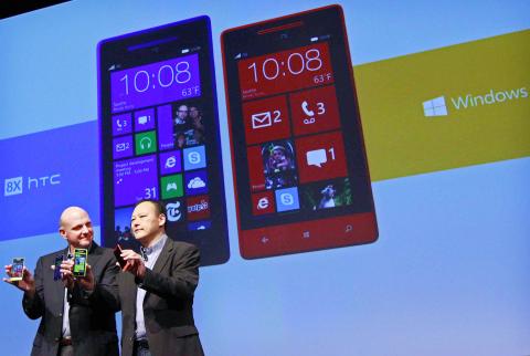 Taiwan’s HTC Corp (宏達電) unveiled its first smartphones powered by Microsoft Corp’s Windows 8 on Wednesday, in a boost for the US software giant’s efforts to break into a market dominated by Apple Inc and Google Inc.
