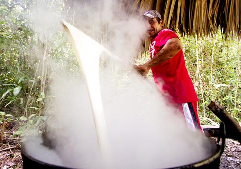 After rappelling from the tree, Rodriguez headed to a jungle camp used by the chicleros to ferment the stuff over a wood fire.
