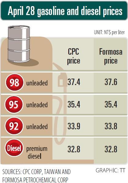 The nation’s two oil refiners yesterday said they would raise gasoline and diesel prices by NT$0.10 per liter this week, effective today, to reflect rising global crude oil prices.