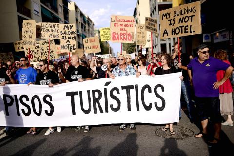 “La Barceloneta rebels,” read signs waved by the locals. “Stop mass wild tourism... My building is not a hotel.”