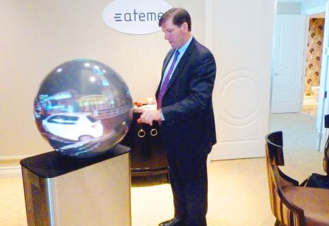 The new viewing experience was shown as part of a collaboration among several partners including French video software firm Ateme and British-based Pufferfish Displays, which makes the spherical projection module.