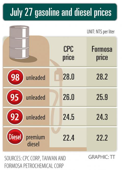 According to Formosa’s price adjustments, its 98-octane unleaded gasoline is NT$28.2 per liter, which is NT$0.2 more expensive than CPC’s equivalent product.