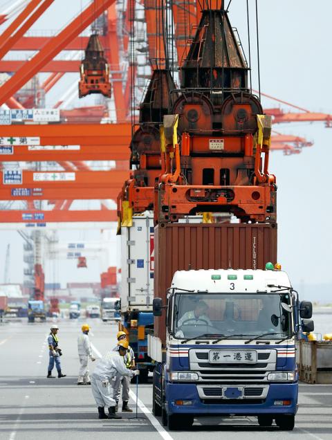 Though exports rose 7.6 percent from a year earlier, imports fell just 3.2 percent, less than forecast. The resulting ¥268.1 billion (US$2.2 billion) deficit reported yesterday compared with a deficit of ¥70.5 billion in June and was the biggest since Feburary.