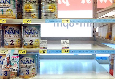 “It’s almost been completely impossible for consumers in Australia and New Zealand to get hold of infant formula powder ... because it’s all been shipped off to China for this bulk-buying on online sales Web sites,” she said.