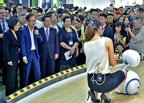 Meanwhile, Asustek Computer Inc (華碩) chairman Jonney Shih (施崇棠) yesterday demonstrated the company’s first domestic robot, Zenbo, to Tsai at the company’s booth at Computex Taipei.