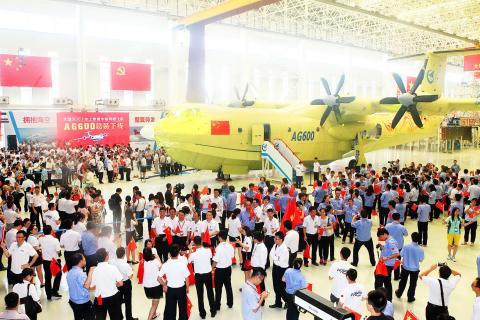The state-owned Aviation Industry Corp of China (AVIC, 中國航空工業) unveiled the first of the new planes, dubbed the AG600, on Saturday in the southern port city of Zhuhai, the official Xinhua news agency reported.