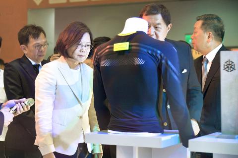 The 2016 Taipei Innovative Textile Application Show (臺北紡織展), with a focus on environmentally friendly and functional products, was opened yesterday by President Tsai Ing-wen (蔡英文) at the Taipei World Trade Center’s Nangang Exhibition Hall.