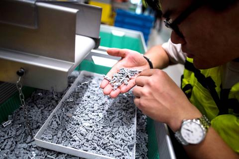 The Lego Group’s first Asian factory opened in China on Friday, the company said, a year after the Danish firm found itself embroiled in controversy over refusing to sell toy bricks to provocative Chinese artist Ai Weiwei (艾未未).