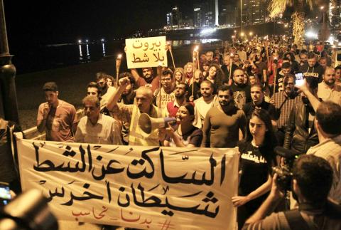 The demonstrators included many of the standouts from last year’s You Stink campaign, which brought thousands of Lebanese into the streets to protest endemic corruption and the trash crisis. The crisis remains unresolved, with untreated garbage filling landfills on the edge of the city, occasionally sending a suffocating stench into some neighborhoods.