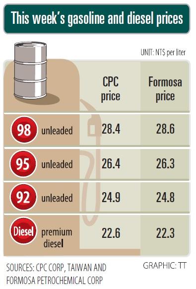 The company said it would not adjust fuel prices this week, with prices at the pumps nationwide to stay unchanged at NT$22.6 per liter for super diesel, NT$24.9 per liter for 92 octane unleaded, NT$26.4 per liter for 95 unleaded and NT$28.4 per liter for 98 unleaded.
