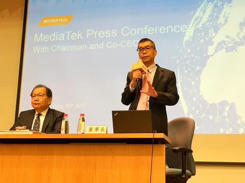 Unveiling its “recovery plan,” MediaTek chairman and co-chief executive officer Tsai Ming-kai (蔡明介) told a media briefing in Hsinchu that the company is developing a new cost-effective modem architecture to go with its mid-range mobile phone chips, dubbed Helio P series, and entry-level 4G chips.