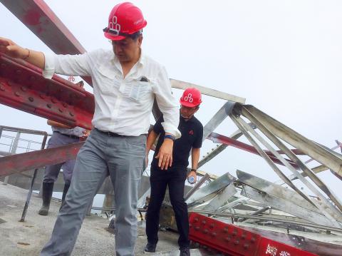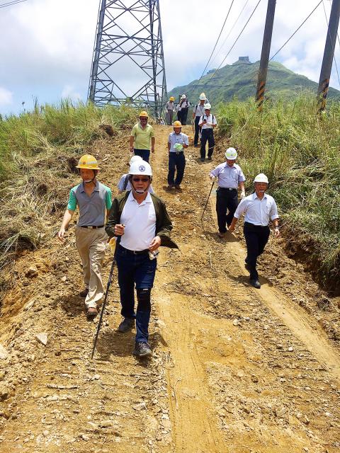 Taipower finished building temporary power lines yesterday and sent equipment to the Dongao (東澳) area to repair the tower, Lee said, adding that the company would build a double-circuit temporary transmission tower instead of a single-circuit tower.
