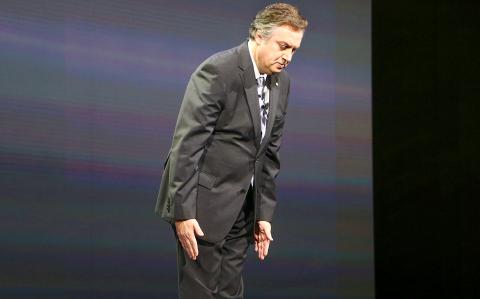 Nissan Motor Co executive vice president Daniele Schillaci yesterday bowed deeply for several seconds in a Japanese-style apology, expressing his remorse for widespread illegal inspections at the automaker.