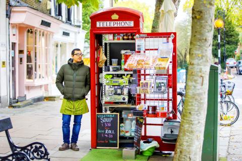 Every day, dozens of office workers come down to Bloomsbury Square to get their lunch at a phone box that has been converted to hold a tiny refrigerator and shelves to put the dishes on.