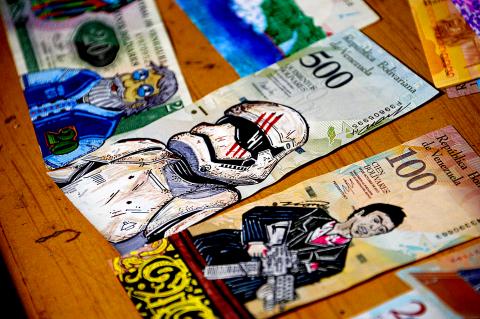 Leon has also drawn the faces of Star Wars characters over that of Bolivar and other famous Venezuelans pictured on the notes.