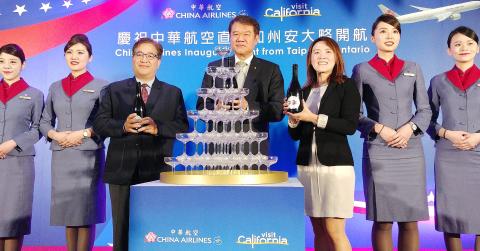 China Airlines Ltd (CAL, 中華航空) yesterday launched direct flights between Taiwan Taoyuan International Airport and Ontario International Airport in California, making it the first Asian carrier to introduce regular services to the destination in eastern Los Angeles.