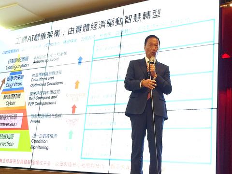 Speaking at the company’s annual general meeting in New Taipei City’s Tucheng District (土城), Gou said that Hon Hai’s industrial AI is vastly different from generalized AI, which is more geared toward consumers.