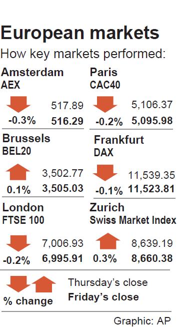 UK shares fared similarly, with the FTSE 100 closing down 0.16 percent at 6,995.91 points, posting a weekly loss of 4.4 percent.
