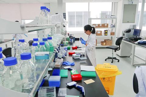 Among firms listed in China, Jiangsu Hengrui Medicine Co (恆瑞醫藥) has invested the most in research by far — amounting to 16 percent of revenue in the latest quarter. Guangzhou-based Yipinhong Pharmaceutical Co (一品紅藥業) is in second place with 8.4 percent. Zhejiang Jingxin Pharmaceutical Co (京新藥業), Chengdu Kanghong Pharmaceutical Group Co (康弘藥業) and Tianjin Lisheng Pharmaceutical Co (天津力生製藥) have each invested about 8 percent of sales into research.