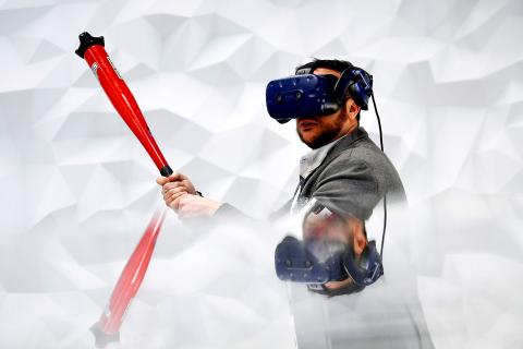 Yesterday, HTC Corp (宏達電) unveiled its 5G smart hub that serves as a mobile hotspot with unprecedented data speeds for up to 20 users. The device enables bandwidth-intensive applications such as smooth 4K video streaming and low-latency gaming, and is equipped with a 12.7cm touchscreen to improve ease of use.
