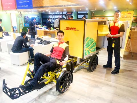 The firm, a local subsidiary of Deutsche Post DHL Group, one of the world’s leading mail and logistics services groups, said that starting next month, it would use a “cubicycle” for deliveries at Tai Yuen Hi-Tech Industrial Park (台元科技園區) in Hsinchu County’s Jhubei City (竹北).