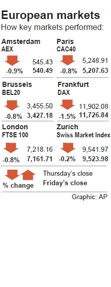 Germany’s trade-sensitive DAX fell 1.5 percent to an about five-month closing low.