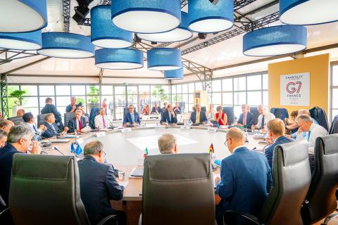 French Minister of Finance Bruno Le Maire met US Secretary of the Treasury Steven Mnuchin on the sidelines of the meeting of G7 finance ministers in Chantilly outside Paris.
