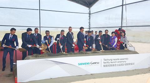 Wind turbine manufacturer Siemens Gamesa Renewable Energy SA (SGRE) yesterday unveiled its nacelle assembly facility in Taichung — the Spanish company’s first outside Europe.