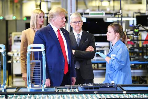 After touring a plant in Austin, Texas, that assembles Apple Inc computers, US President Donald Trump on Wednesday said that he was considering whether to exempt the US company from tariffs on imports from China.