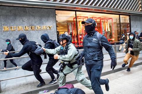 The local economy is stuck in a “vicious cycle” whereby scenes of protest deter tourist arrivals, and reduce earnings and employment in the retail and hospitality sector, creating further wage cuts and job losses, ING Bank NV greater China economist Iris Pang (彭藹嬈) said.