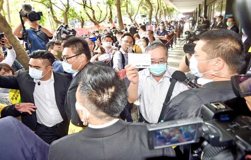 They were being denied a vote because they had contravened the Business Mergers and Acquisitions Act (企業併購法), and the Act Governing Relations Between the People of the Taiwan Area and the Mainland Area (兩岸人民關係條例), Lin Kuo said.