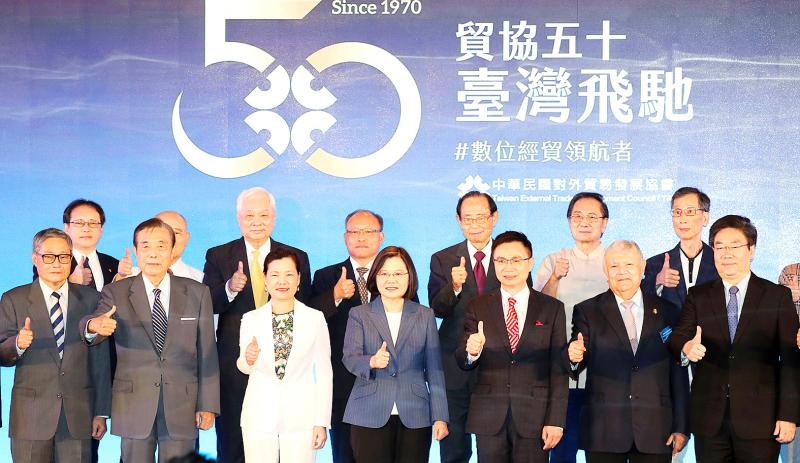 Also at the ceremony, President Tsai Ing-wen (蔡英文) affirmed TAITRA’s role not only in promoting trade, but diplomacy, too.
