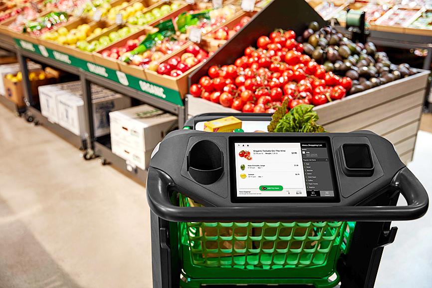 Each cart uses computer vision software and sensor data to identify what is put inside, showing a running total along with item descriptions and prices on a display, according to Amazon.