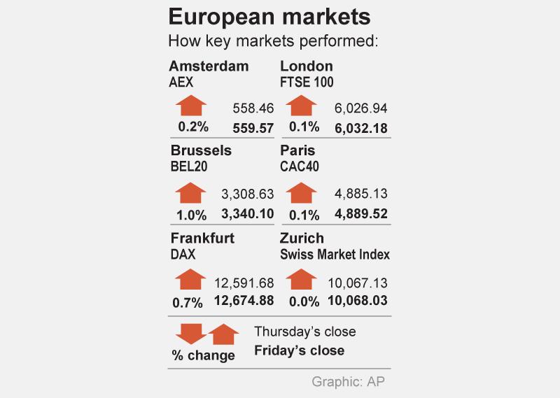 German stocks rose 0.7 percent, while London’s FTSE 100 and France’s CAC 40 were flat, but all logged weekly rises.